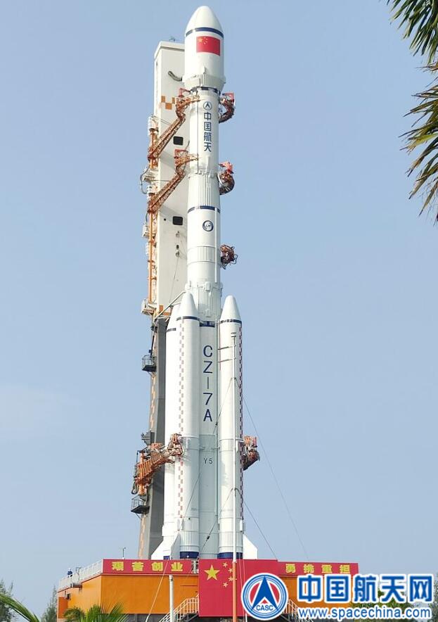 長征七號A運載火箭是由中國航天科技集團有限公司一院研制的三級液體捆綁式新一代中型高軌運載火箭。本次任務(wù)火箭采用4.2米直徑整流罩,全箭總長60.1米,起飛重量約570噸,起飛推力727噸。