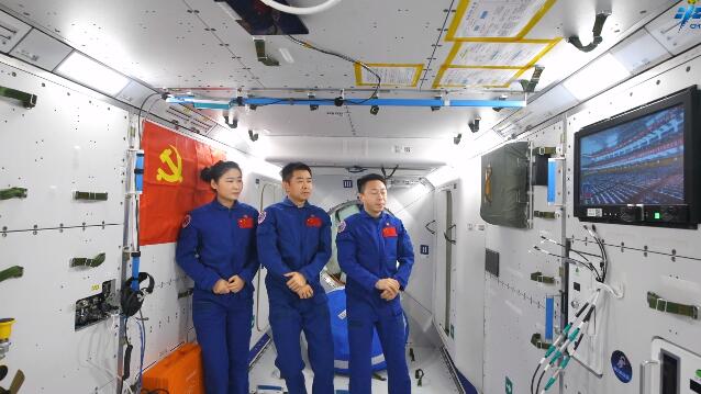 神舟十四號航天員乘組在中國空間站收看黨的二十大開幕盛況