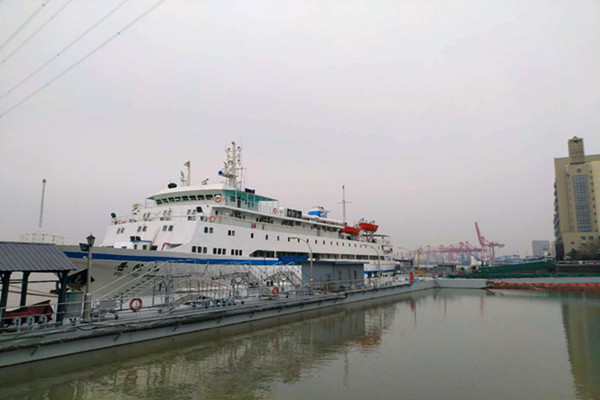 船載衛(wèi)星站“普陀山”輪的開通工作現(xiàn)場(chǎng)