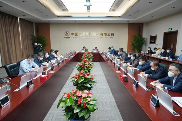 2月1日上午,航天科技集團(tuán)總經(jīng)理張忠陽一行到中國衛(wèi)通調(diào)研指導(dǎo),中國衛(wèi)通董事長、黨委書記李忠寶陪同現(xiàn)場調(diào)研了寬帶衛(wèi)星運(yùn)營中心、衛(wèi)星測控中心、業(yè)務(wù)運(yùn)行中心及星航互聯(lián)創(chuàng)新實(shí)驗(yàn)室,聽取了中國衛(wèi)通數(shù)字化轉(zhuǎn)型、平臺(tái)建設(shè)及衛(wèi)星互聯(lián)網(wǎng)應(yīng)用等情況匯報(bào),觀看了船載信息服務(wù)平臺(tái)及航空互聯(lián)網(wǎng)業(yè)務(wù)的演示。公司總經(jīng)理孫京圍繞公司經(jīng)營概況、轉(zhuǎn)型發(fā)展戰(zhàn)略思路及2023年重點(diǎn)工作等方面作了專題匯報(bào)。